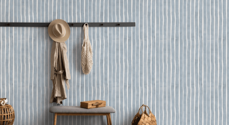 In un ingresso dal soffitto basso, scegli righe verticali, che sollevano lo sguardo creando l’impressione di un ambiente più alto come Decorative Watercolor Stripes o carte come Bleu o Floralia , in cui alla verticalità delle righe si aggiunge quella dei fiori, con un effetto magico.